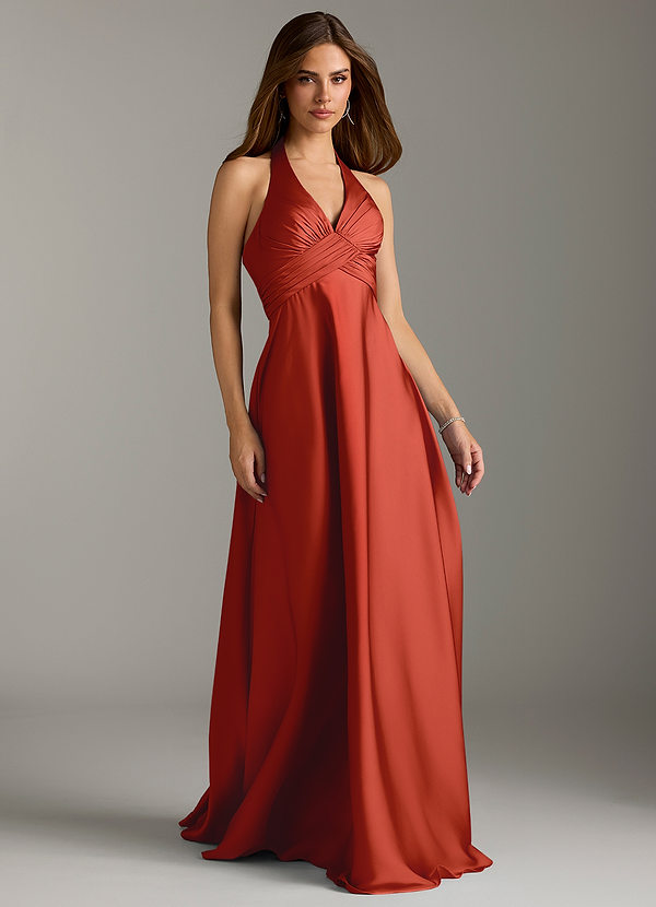 Azazie Tessie A-Line Pleated Stretch Satin Dress