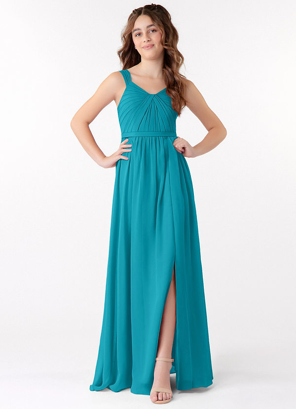 Azazie Evie Junior A-Line Pleated Chiffon Dress