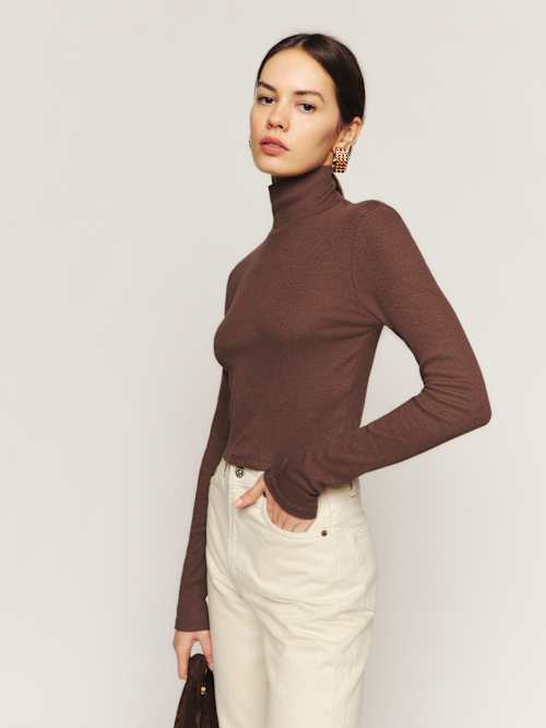 Reformation Davy Cropped Ribbed Turtleneck Tee