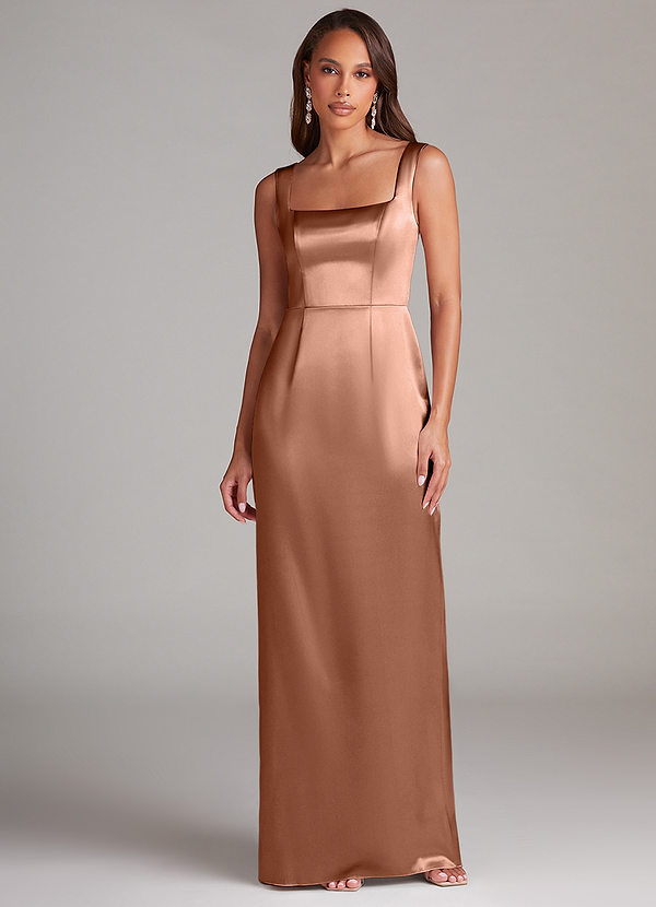 Azazie Flori Sheath Side Slit Metallic Satin Dress