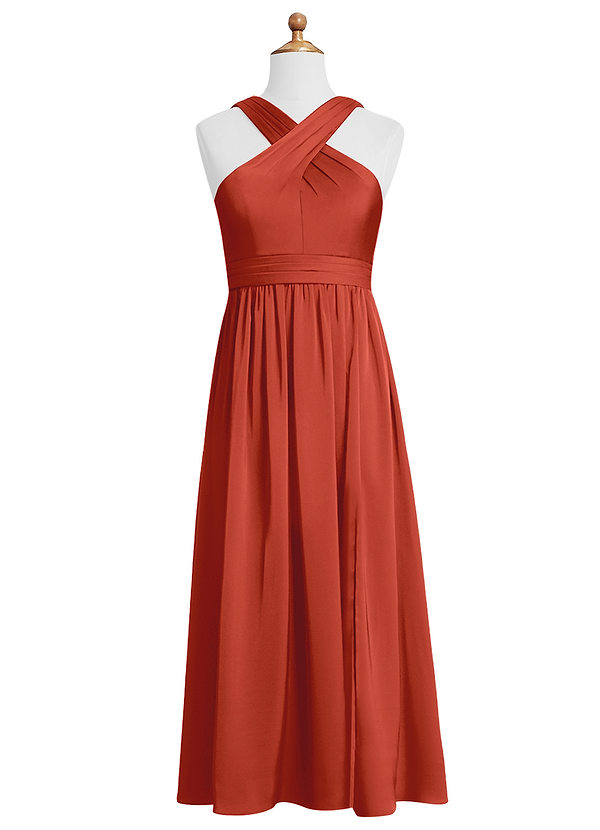 Azazie Jiya Junior A-Line Pleated Stretch Satin Dress