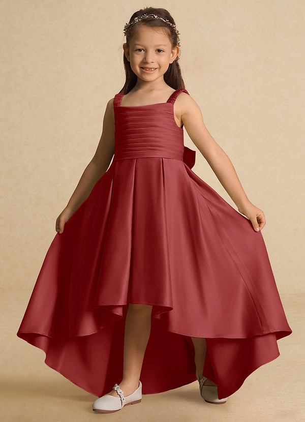 Azazie Kat A-Line Pleated Matte Satin Dress