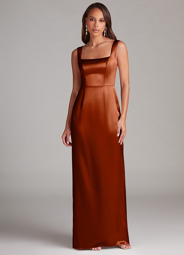 Azazie Flori Sheath Side Slit Metallic Satin Dress