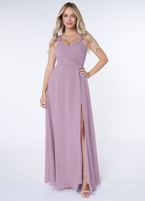 Azazie Nahrin A-Line V-Neck Pleated Chiffon Dress