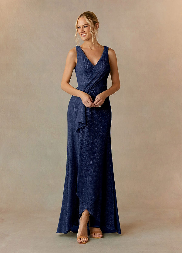 Azazie Upstudio Tuscon A-Line V-Neck Ruched Metallic Mesh Dress