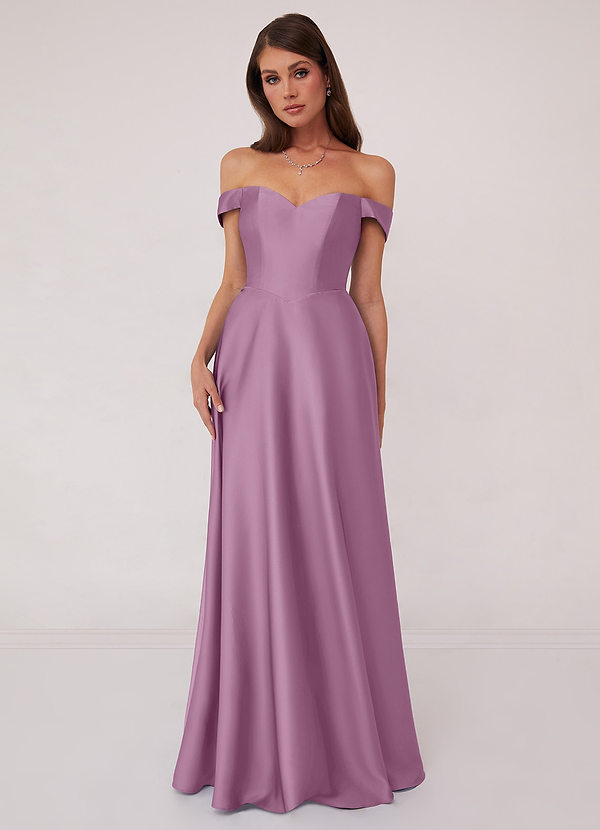 Azazie Barbie™ AZAZIE 1013 Off Shoulder Dropwaist Stretch Satin Ball Gown