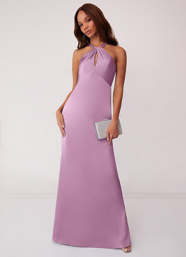 Azazie Barbie™ AZAZIE 1006 Keyhole Halter Stretch Satin Sheath Dress