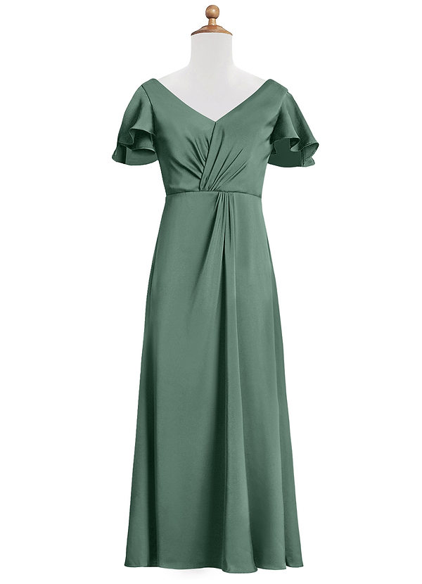 Azazie Soren Junior A-Line Ruched Stretch Satin Dress