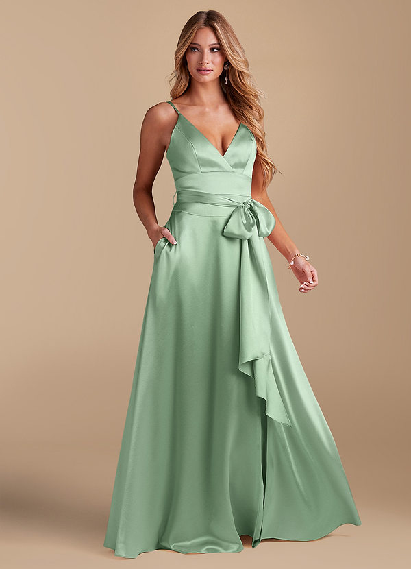 Azazie Sophia A-Line with Pockets Metallic Satin Dress