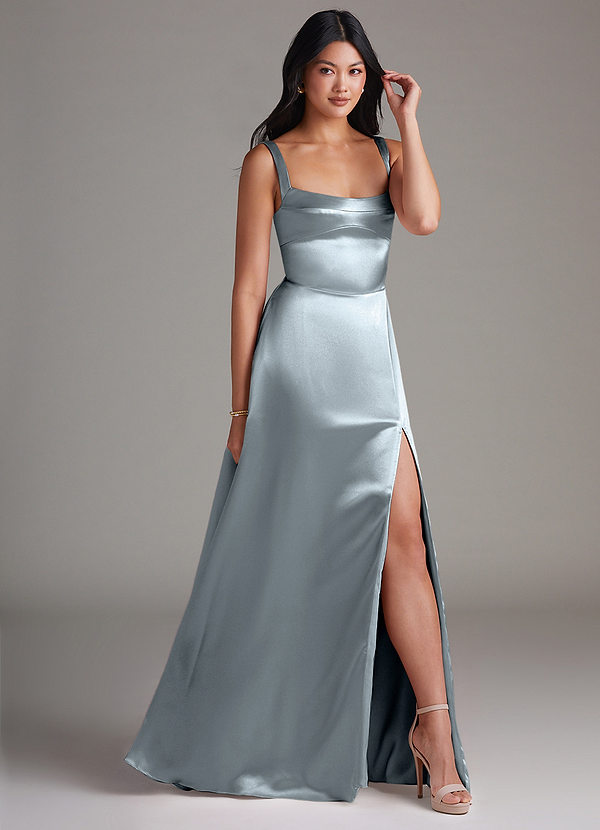 Azazie Hope A-Line with Pockets Metallic Satin Dress
