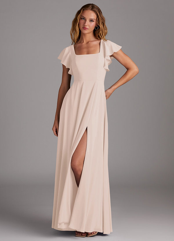 Azazie Bondi A-Line Side Slit Stretch Chiffon Dress