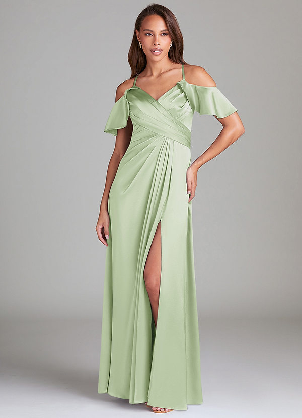 Azazie Dakota A-Line Off the Shoulder Metallic Satin Dress