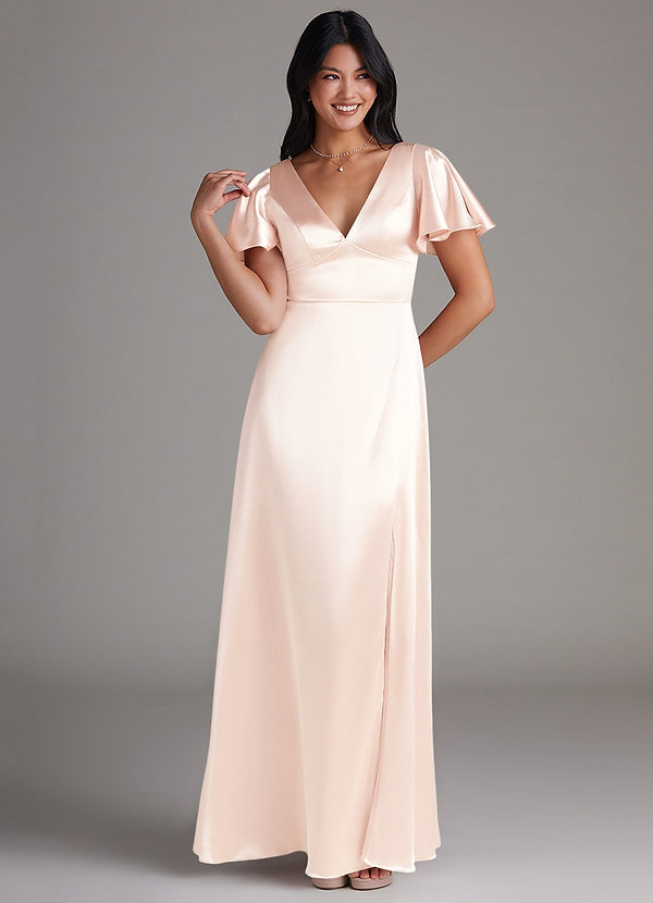 Azazie Lani A-Line Metallic Satin Dress