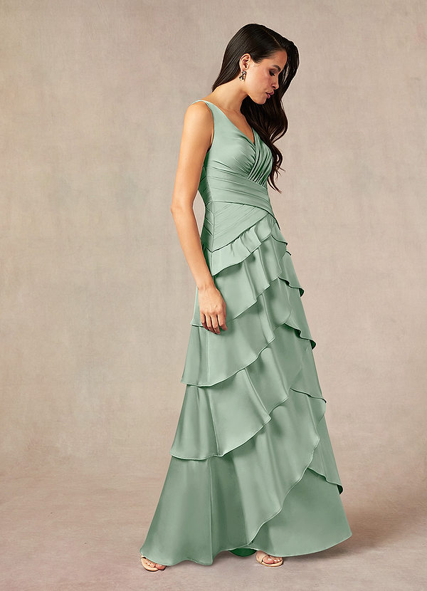 Azazie Viola A-Line Pleated Stretch Satin Dress
