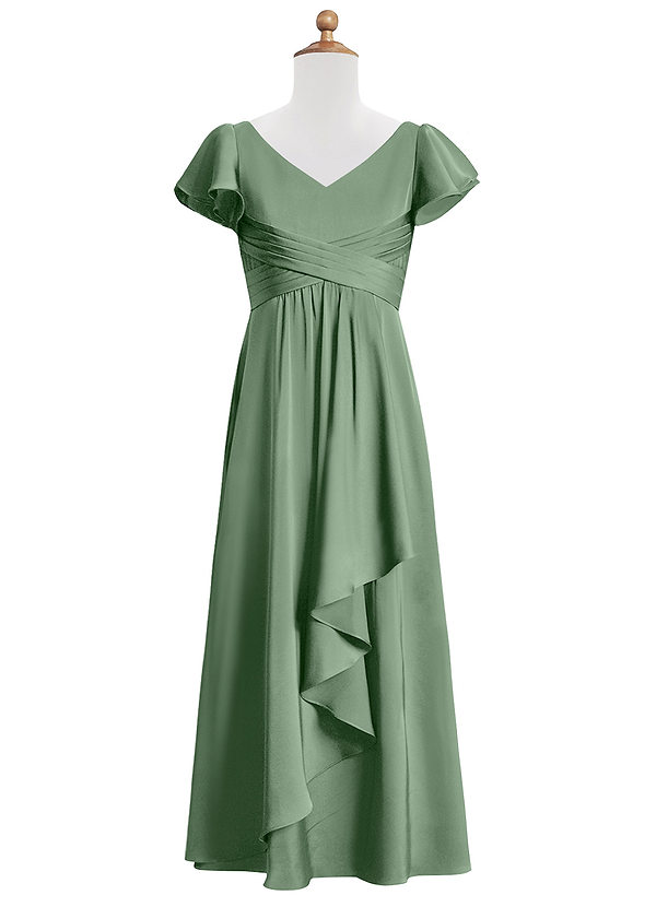 Azazie Omari Junior A-Line Pleated Stretch Satin Dress