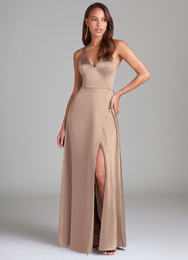 Azazie Maksim A-Line Metallic Satin Dress
