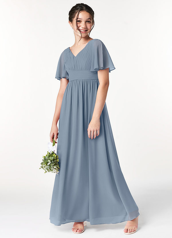 Azazie Temeka Junior A-Line Pleated Chiffon Dress