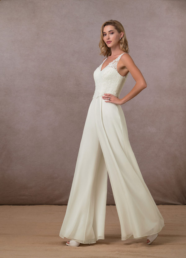 Azazie Florine V-Neck Lace Chiffon Jumpsuit