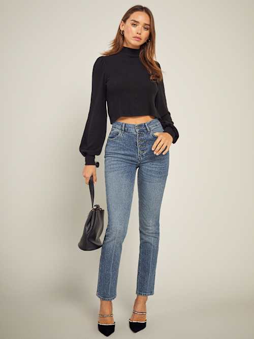 Reformation Liza Button Fly High Rise Straight Jeans