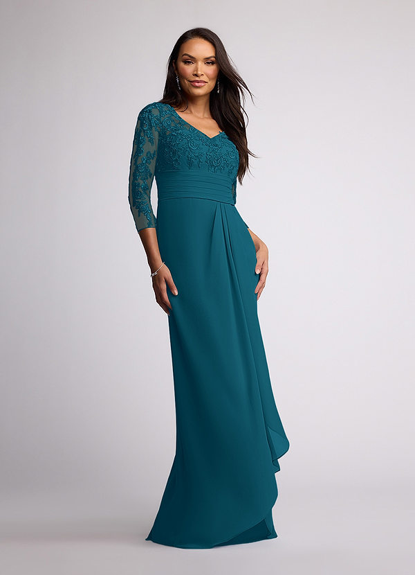 Azazie Joan Sheath V-Neck Lace Chiffon Dress
