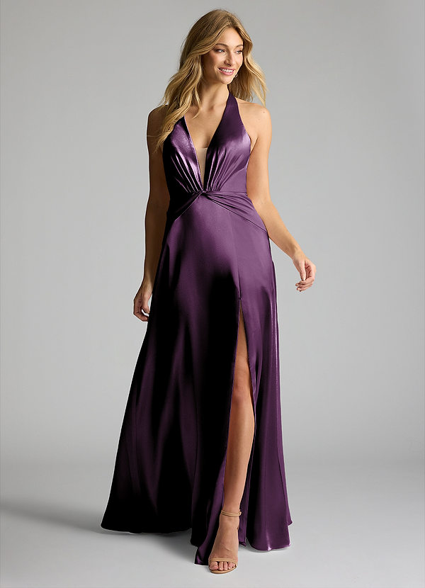 Azazie Janessa A-Line Metallic Satin Dress