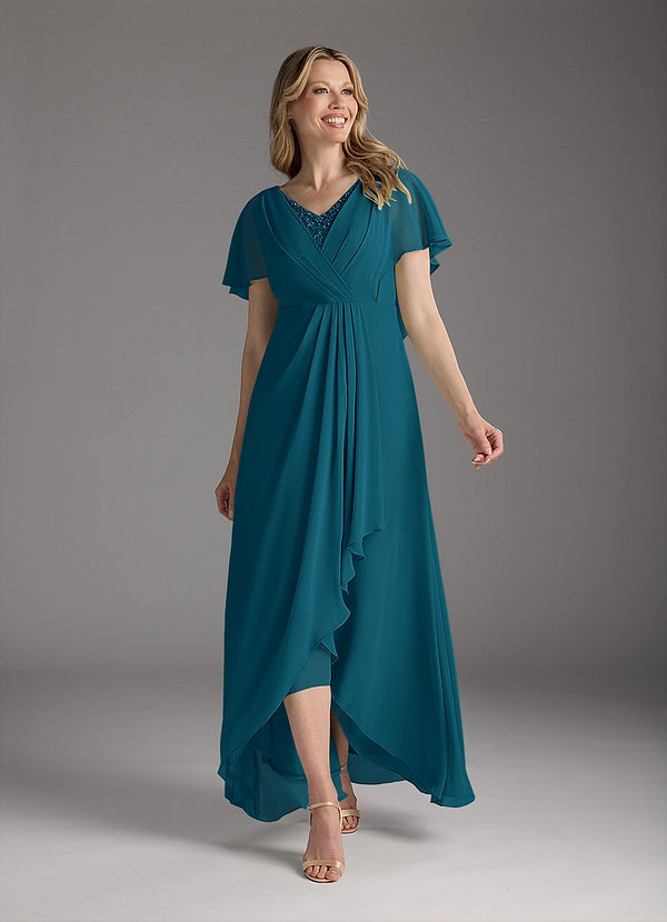 Azazie Eliza A-Line V-Neck Pleated Chiffon Dress