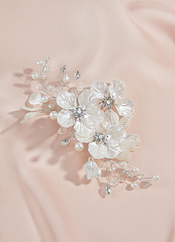Azazie White Floral And Pearl Crystal Hair Clip