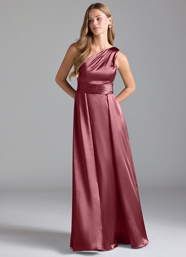 Azazie Dallas A-Line One Shoulder Metallic Satin Dress
