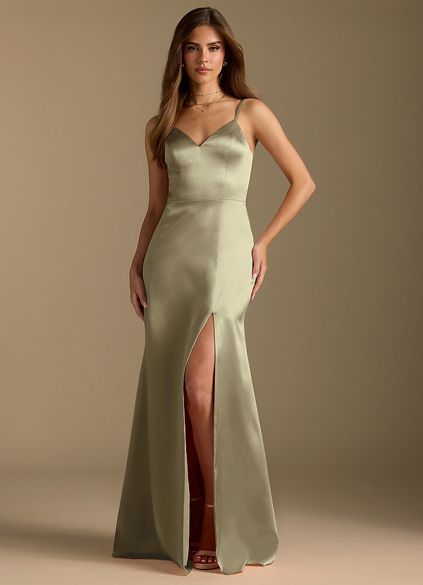 Azazie Elissia A-Line Metallic Satin Dress