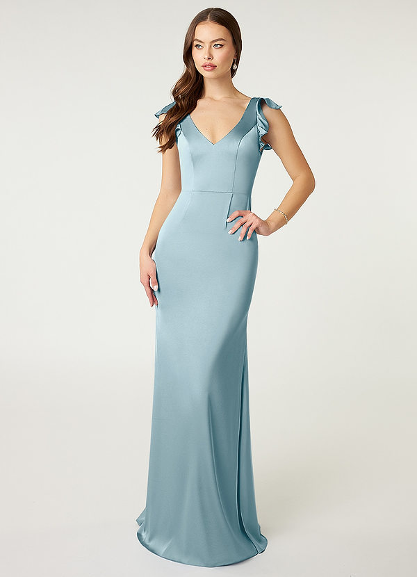 Azazie Vero Sheath Ruched Stretch Satin Dress