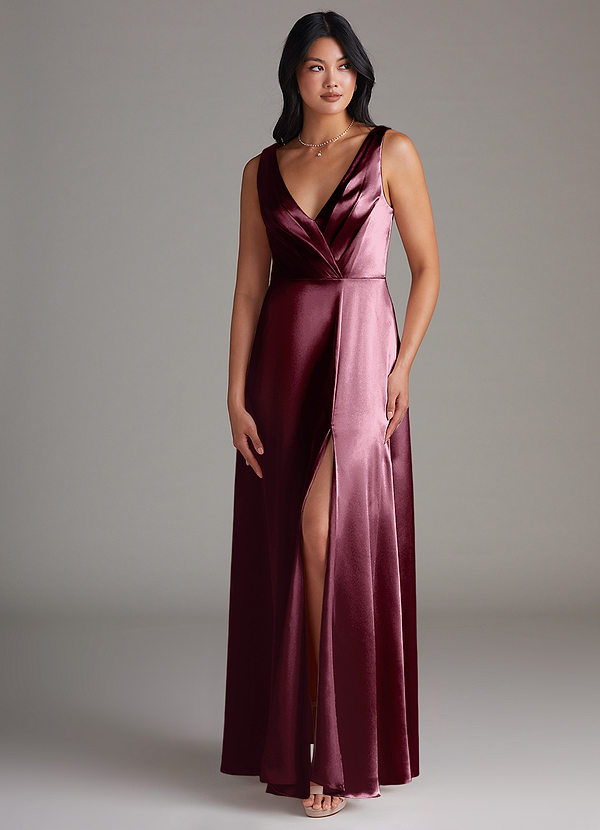 Azazie Nelly A-Line Pleated Metallic Satin Dress