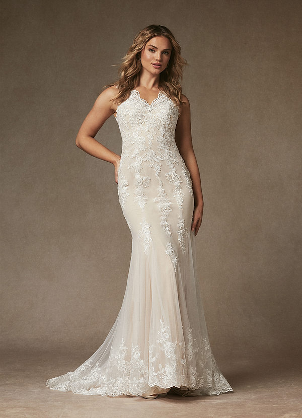 Azazie Honeydew Mermaid Lace Tulle Dress