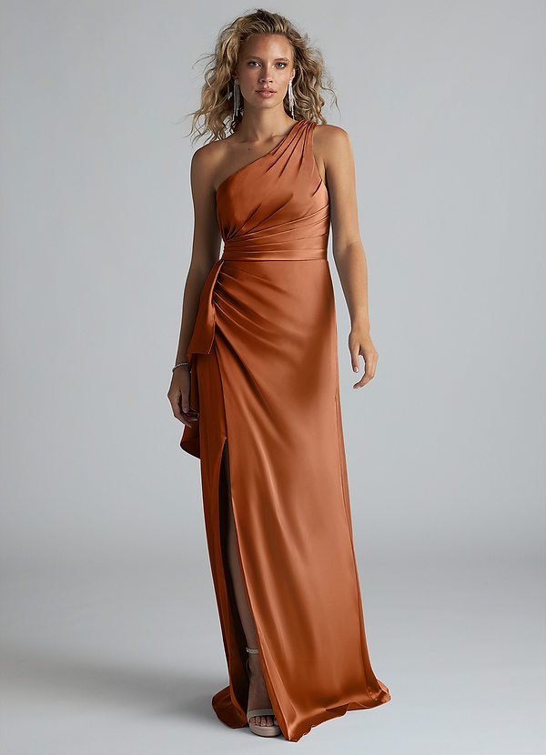 Azazie Maive Sheath Ruched Stretch Satin Dress