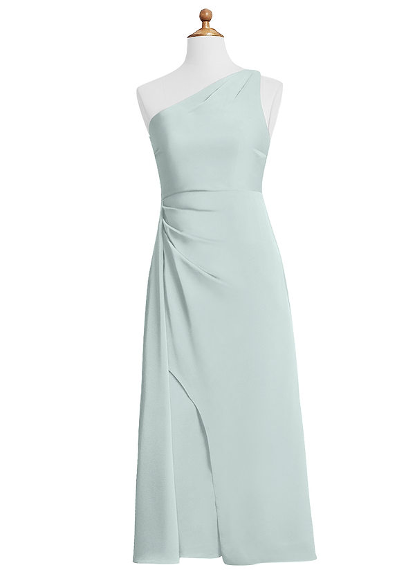 Azazie Maron Junior A-Line Pleated Stretch Satin Dress