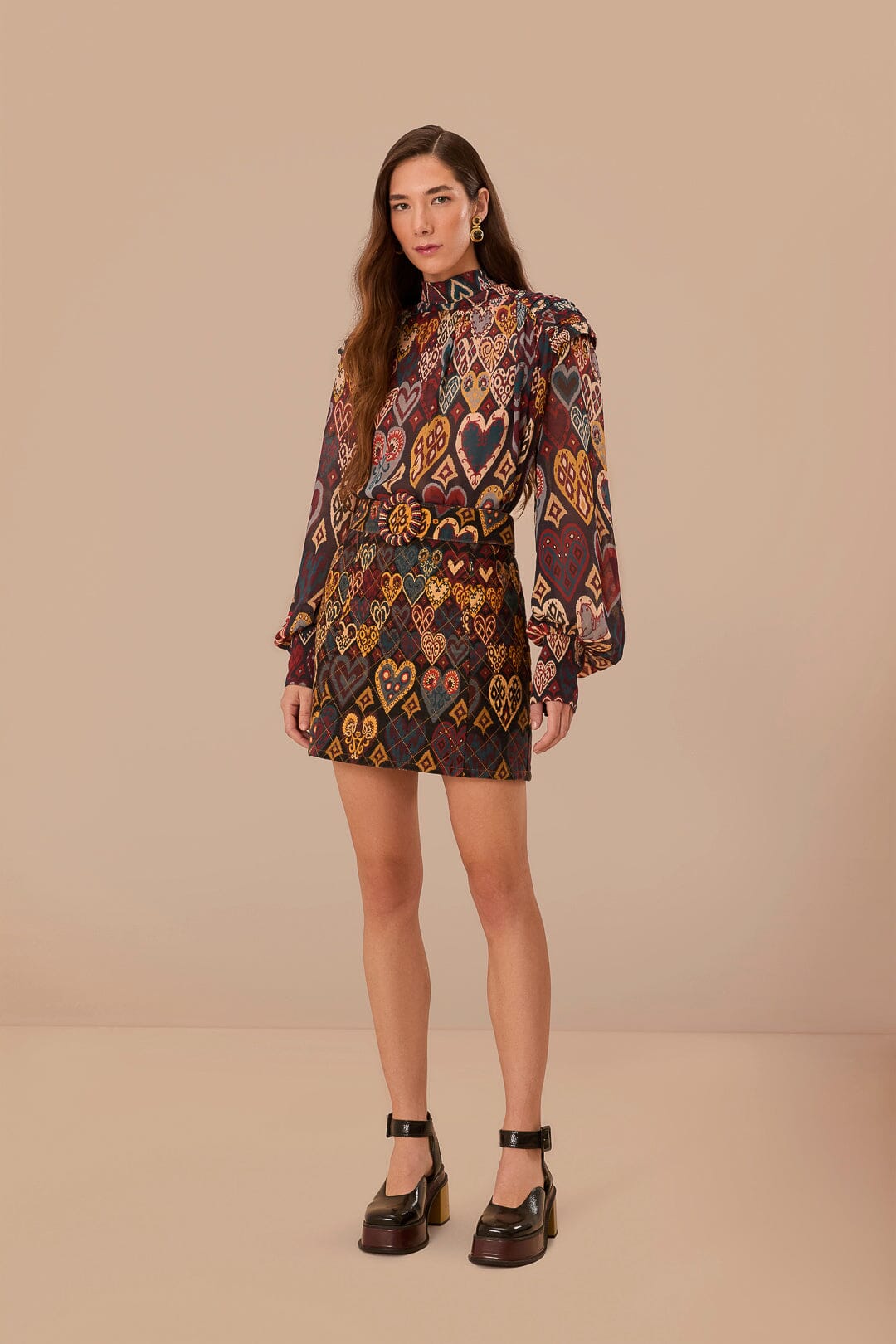 Farm Rio black hearts ikat blouse