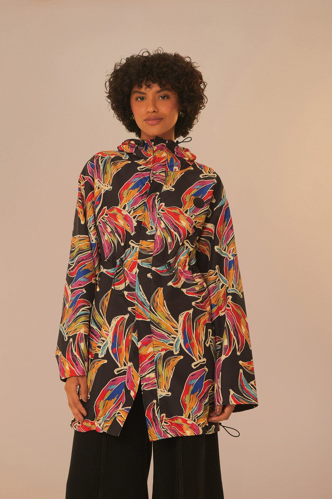 Farm Rio black artsy bananas short raincoat