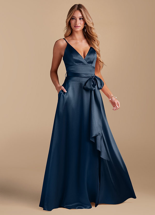 Azazie Sophia A-Line with Pockets Metallic Satin Dress