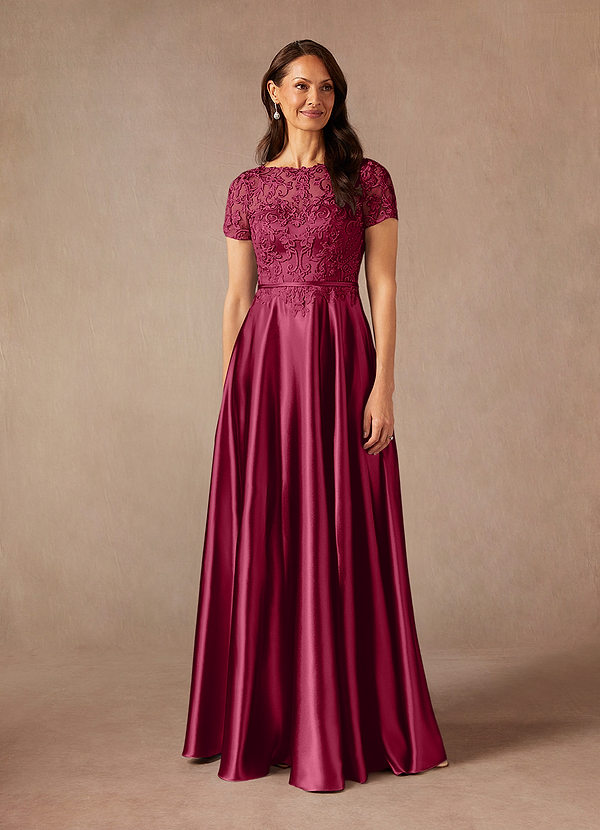 Azazie Adina A-Line Lace Metallic Satin Dress