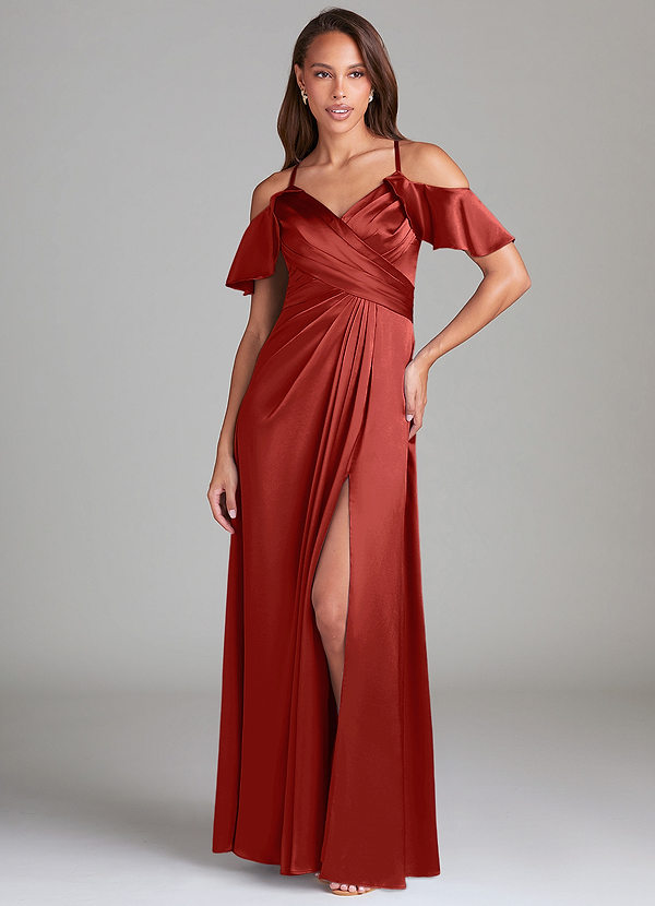 Azazie Dakota A-Line Off the Shoulder Metallic Satin Dress