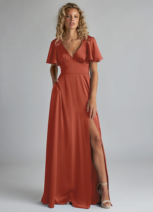 Azazie Kimber A-Line Ruched Stretch Satin Dress