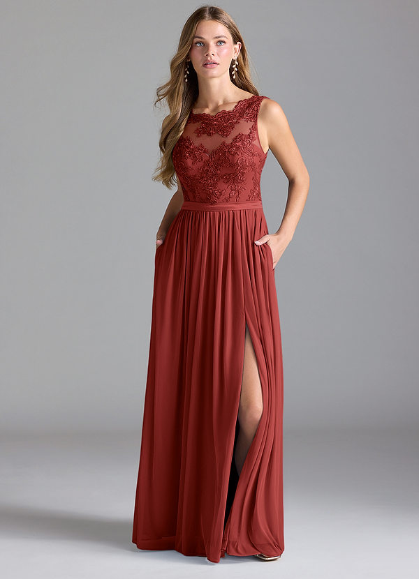 Azazie Elly A-Line Lace Mesh Dress