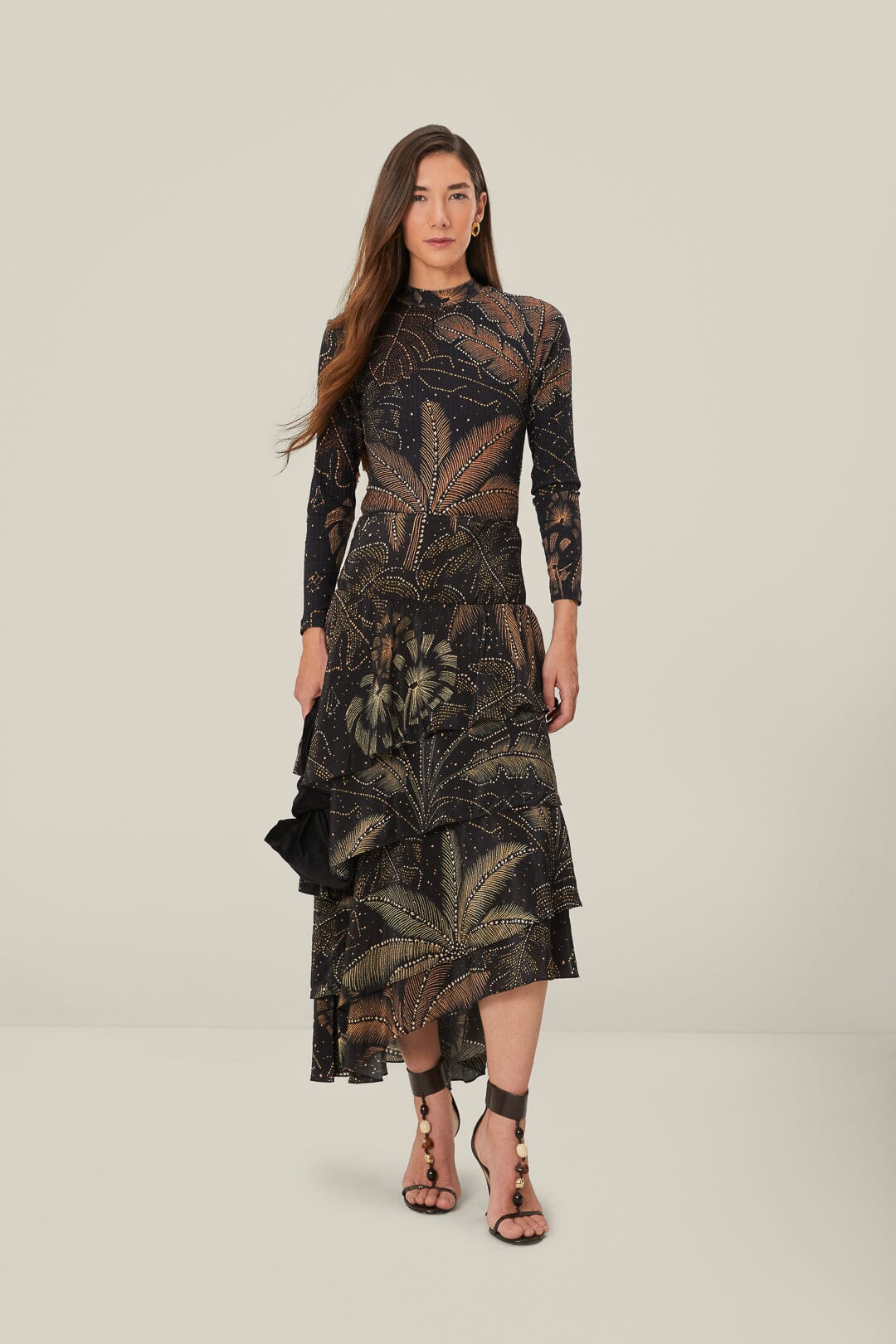 Farm Rio black golden foliage ruffled skirt