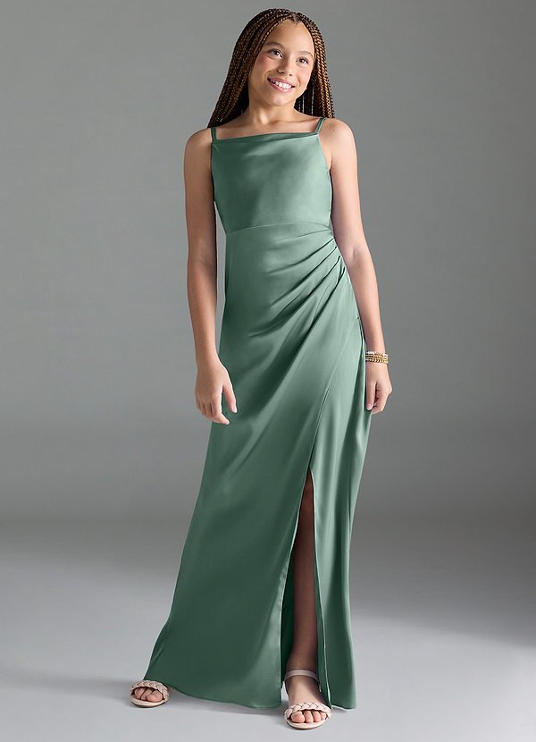 Azazie Leonis Junior A-Line Pleated Stretch Satin Dress