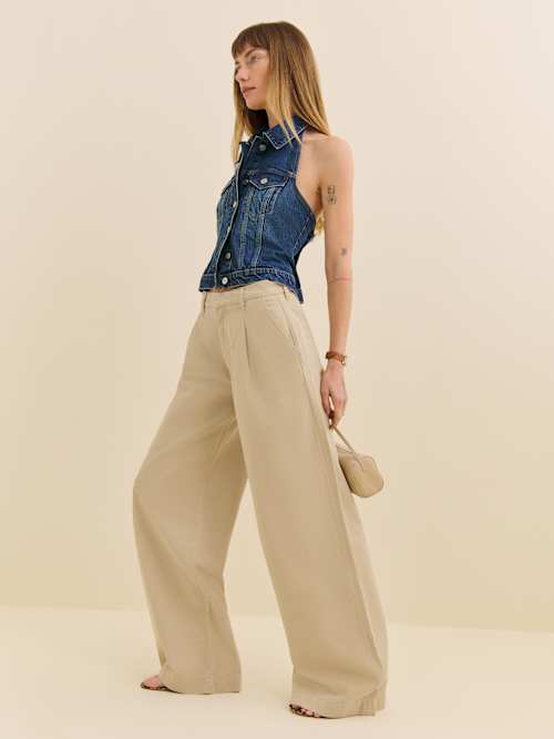 Reformation Malia Mid Rise Wide Leg Pleated Trouser Pants