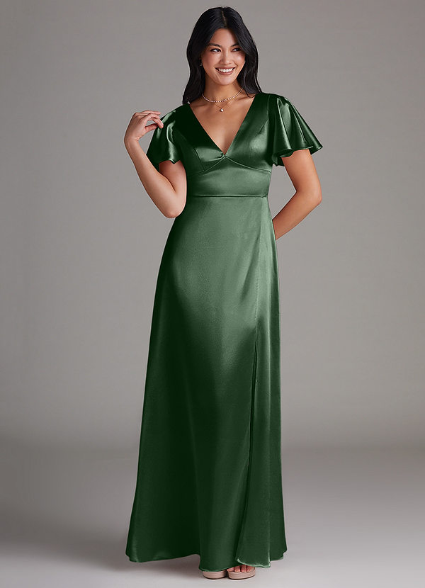 Azazie Lani A-Line Metallic Satin Dress