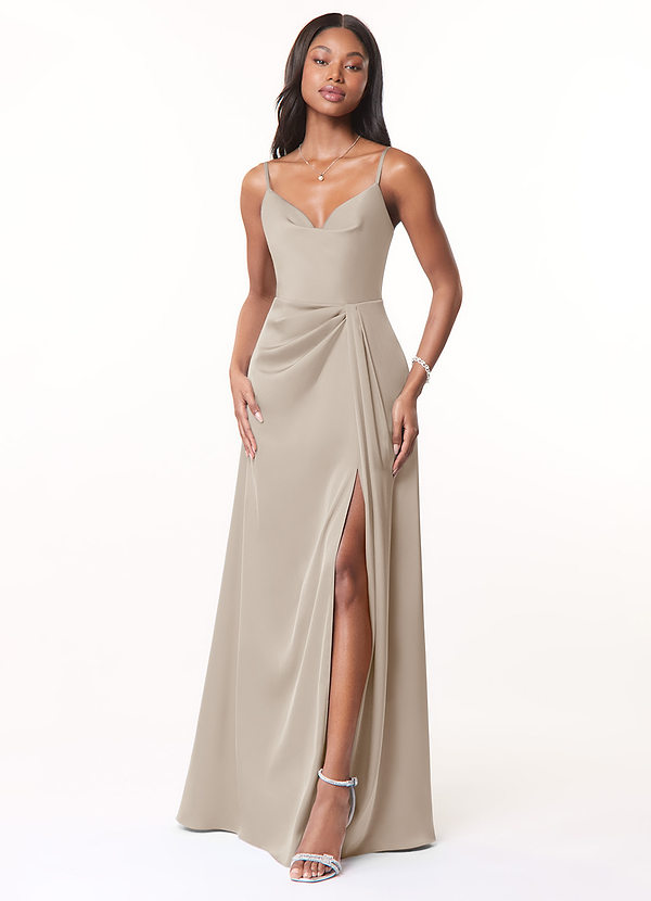 Azazie Brielle A-Line Cowl Spaghetti Straps Stretch Satin Dress