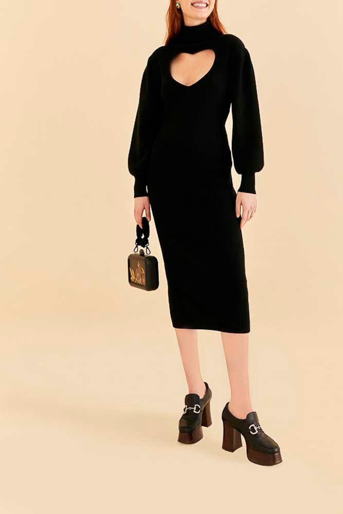 Farm Rio black heart neckline knit dress
