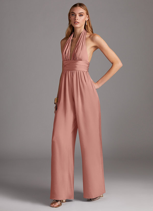 Azazie Oli Pleated Stretch Satin Jumpsuit