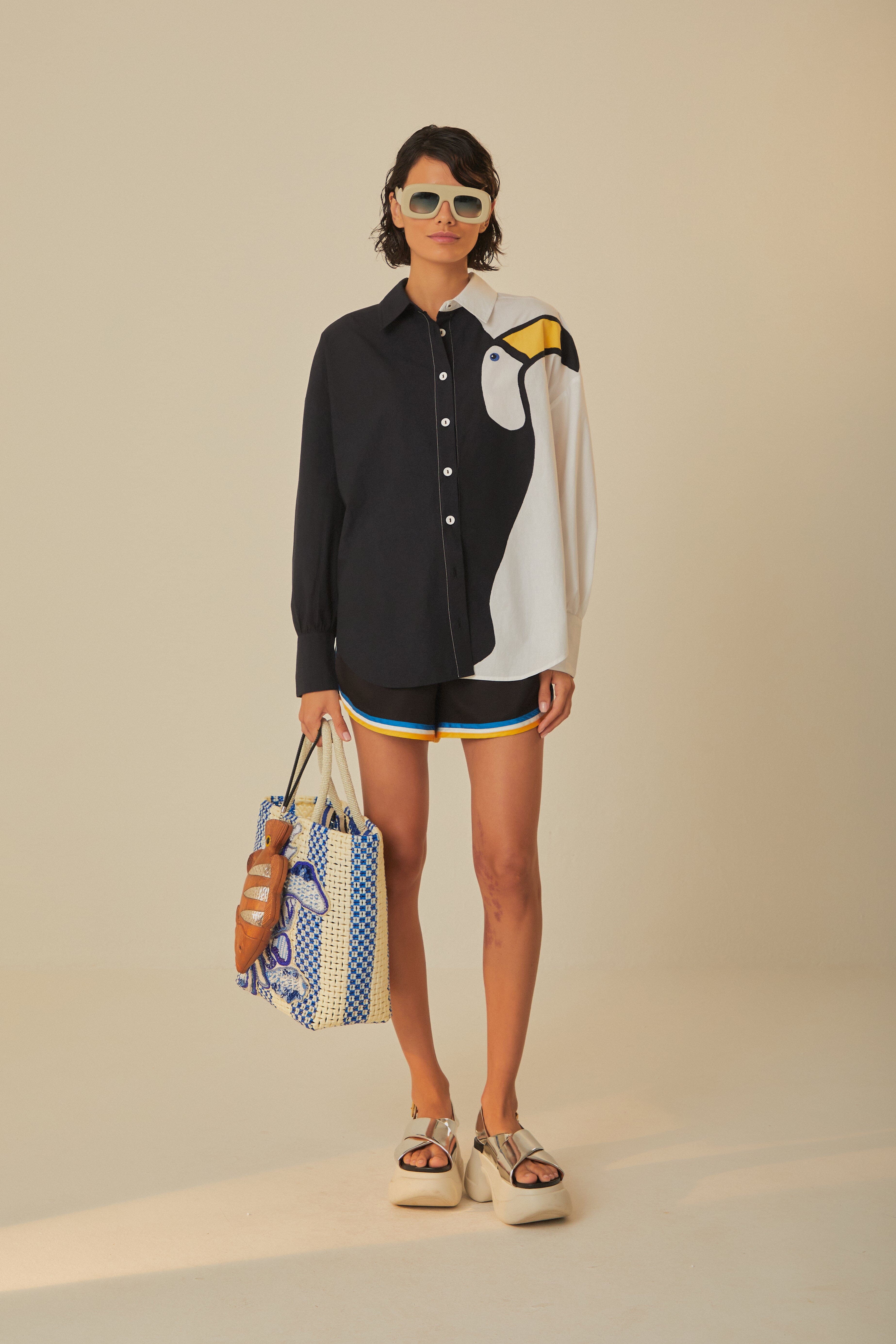 Farm Rio black with stripes shorts