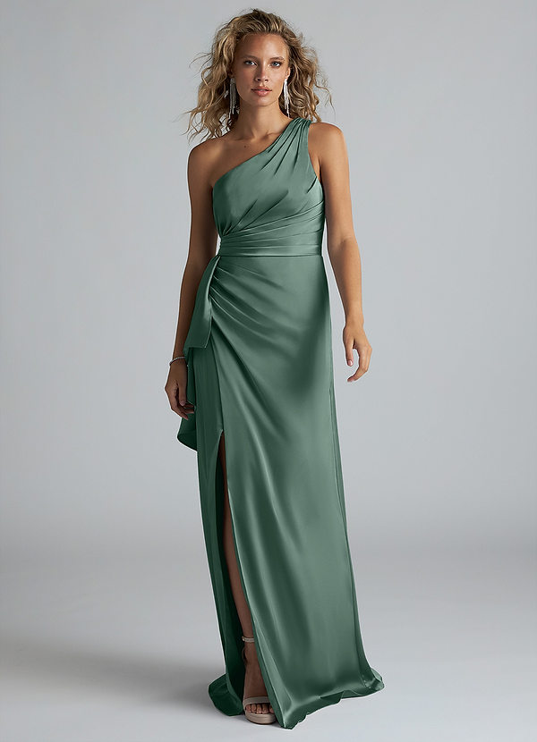 Azazie Maive Sheath Ruched Stretch Satin Dress